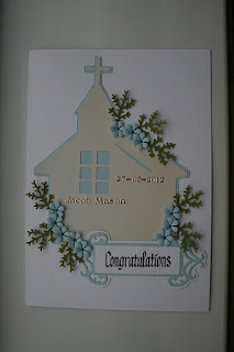 And this is the christening card for the boy. Again used the cricut to cut out the little church, spellbinder dies and Nellie Snellen punches. I am really pleased about the end result.